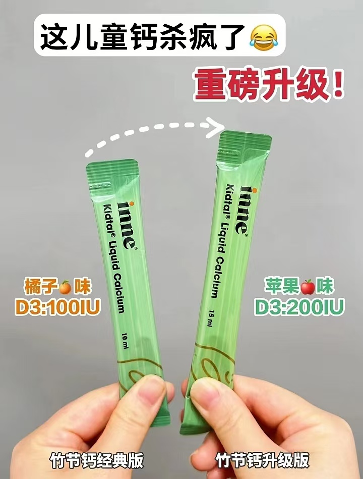 • 商品名称:inne因你 竹节钙青少年液体钙儿童生长长高补钙钙镁锌赖氨酸钙30条/罐 新版苹果味