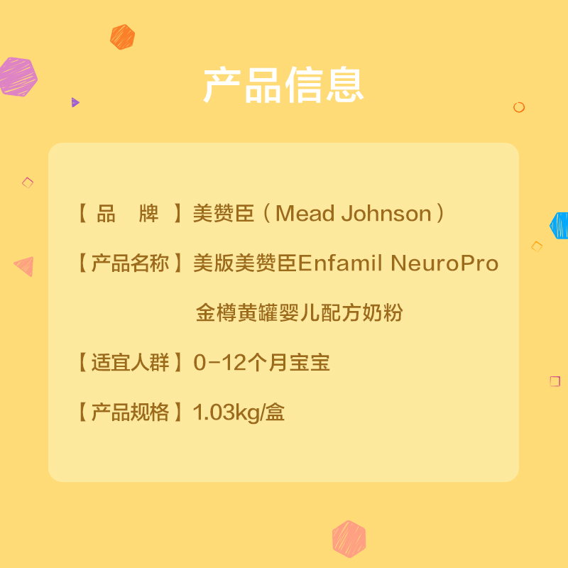 • 商品名称:美赞臣美版NeuroPro金樽HMO婴儿配方奶粉1段补充盒(0-12月)1.032kg/盒